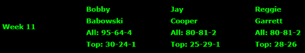 UltimateCapper CONSENSUS STAFF PLAYS WEEK 11: