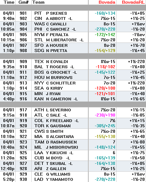 We have a full slate of MLB action lined up for today with 13 day games and just two night games. Jay had his first losing day of the season, but is still 7-6 (+$287). Bobby nailed his play on the Yankees last night and is coming back with a play in this afternoon's Yankees vs. Mariners game.